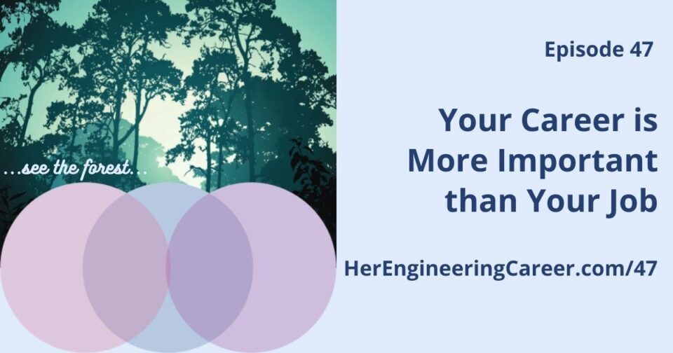 So do well in your job. Learn and grow. Make your contribution there. But if your job no longer serves your career, move on. Your career is more important than your job. Don’t lose the forest for the trees. Don’t lose sight of your career by focusing too hard on your job.